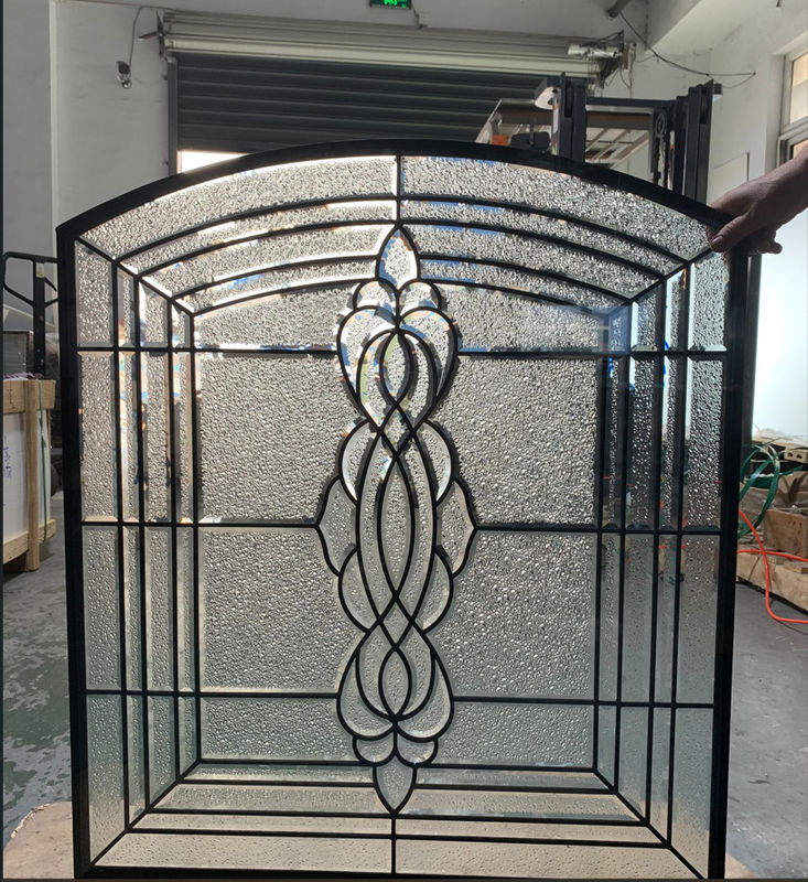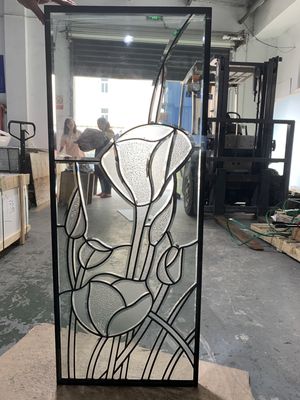 Customized lily design clear beveled Entry Door Decorative Leaded Glass With Patina Caming